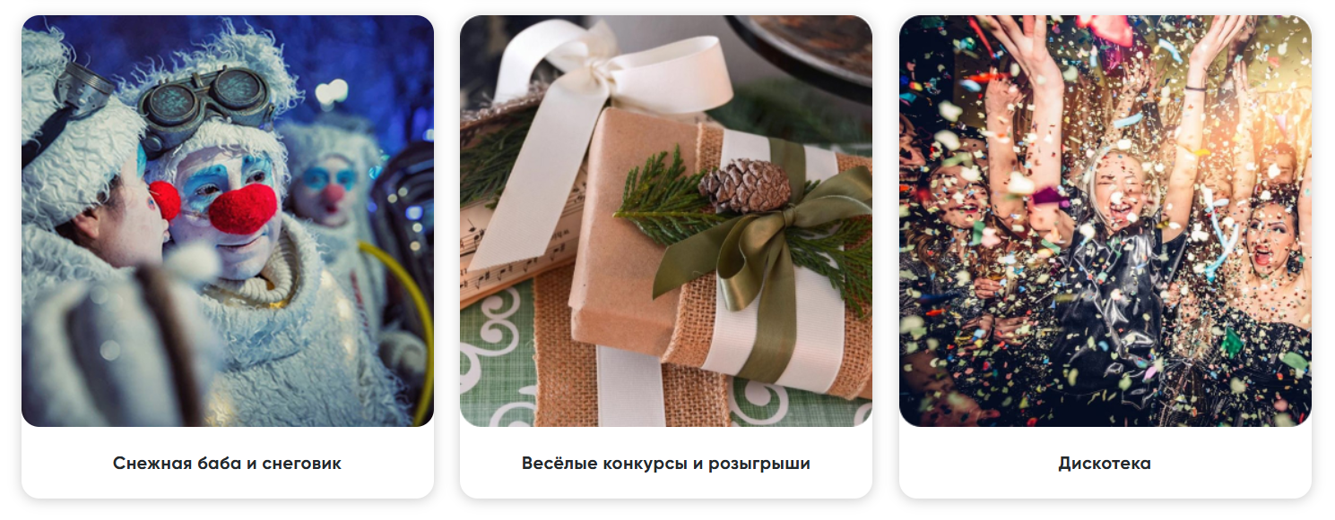 Для детей до 12 лет - отдельная развлекательная зона с аниматорами + подарок от Деда Мороза.