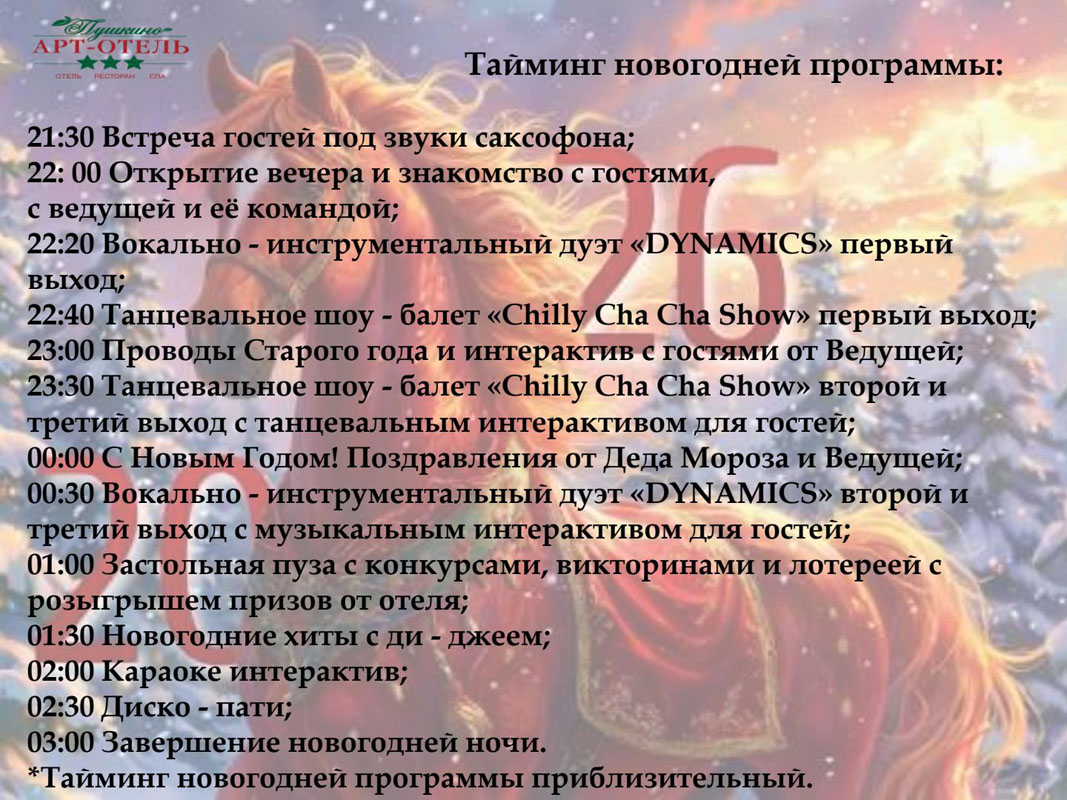 Время начала/окончания: 31.12.25 21:30-1.01.26 03.00