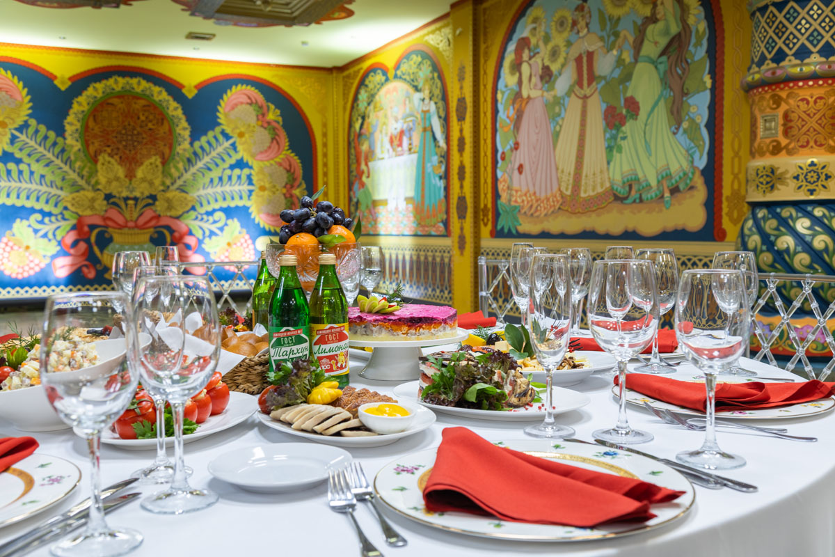 Декоративное оформление банкетного зала позволяет идеально вписаться в концепцию мероприятий «А-ля рус», «Русские сказки», «Этнические проекты» и многие другие мероприятия.
