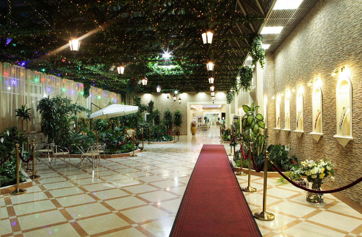 Роскошная площадка Grand Paradisе, с красивой входной группой и Зимними садами, а также прудом с парчовыми карпами коя.