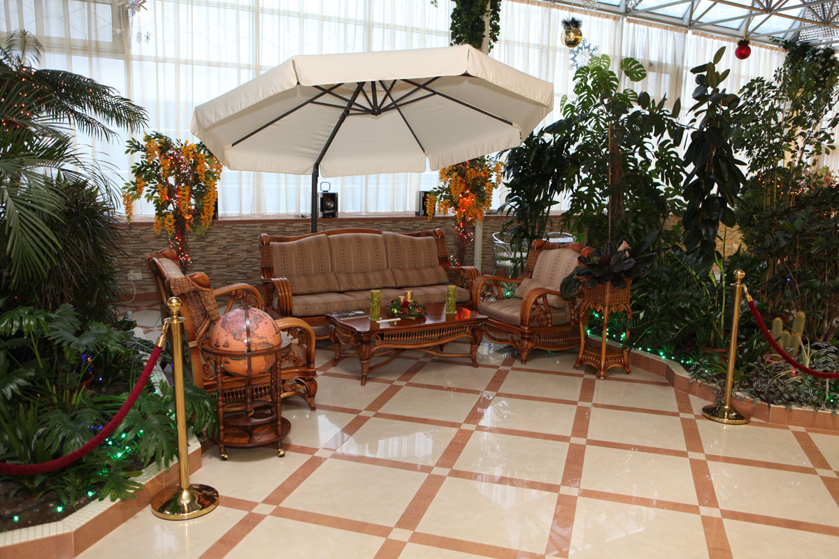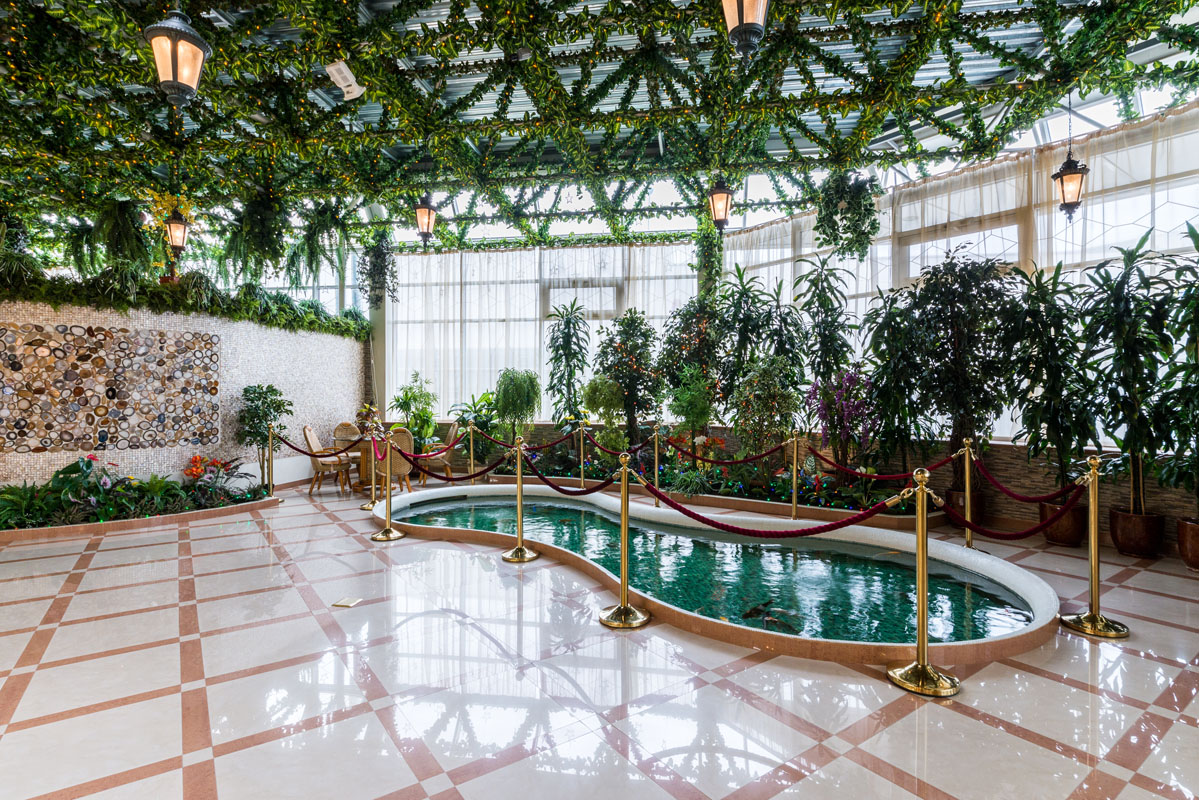 Роскошная площадка Grand Paradisе, с красивой входной группой и Зимними садами, а также прудом с парчовыми карпами коя.