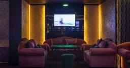 Интерьер зала с элементами классицизма создаёт атмосферу романтики и шика. Комфортное зонирование, манящая интимность обстановки призывают гостей отдохнуть и расслабиться, а затем взбодриться и спеть акаппелла или соло в профессиональный микрофон. Караоке- зал рассчитан на от 30 до 50 гостей, зал оборудован профессиональным звуком с диванами по периметру и телевизорами. В « Маэстро » весьма просторно, поэтому здесь можно проводить и корпоративные вечеринки и праздники.