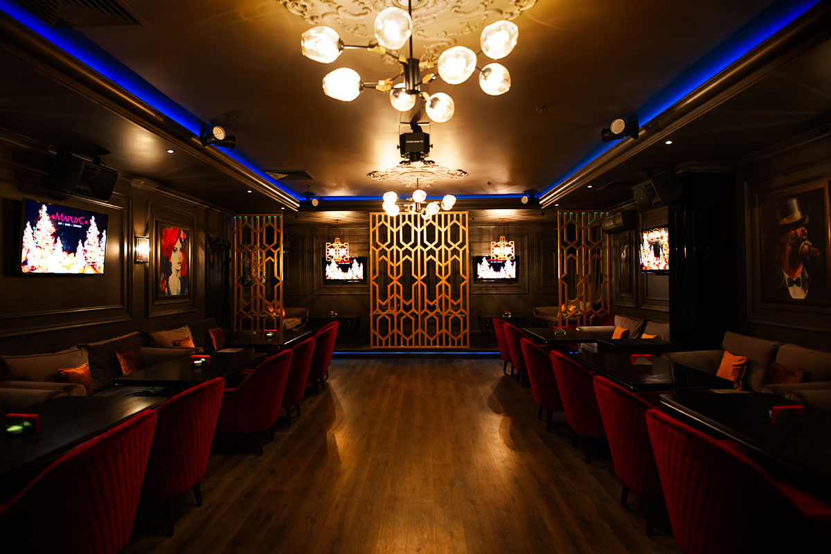 Элегантный зал в стиле закрытого лондонского клуба. Благородство интерьера и профессиональная аппаратура с богатым выбором песен созданы для современных леди и джентльменов, желающих достойно отдохнуть и проявить здесь свои таланты. Зал рассчитан на 30-45 гостей, оборудован профессиональным звуком с диванами по периметру и телевизорами. В зале весьма просторно, поэтому здесь можно проводить и корпоративные вечеринки и праздники.